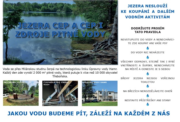 Jezera Cep a Cep I slouží jako stěžejní zdroj pitné vody, který denně zásobuje více než 10 000 obyvatel Třeboňska. Břehy nejsou veřejnou toaletou, do vody se nesmí nic házet a je přísně zakázáno zde koupat i psy. Zbylé lokality jsou zase nebezpečné kvůli aktivní těžbě.
