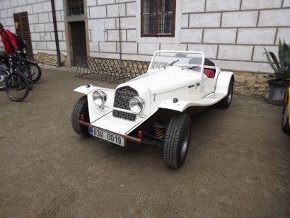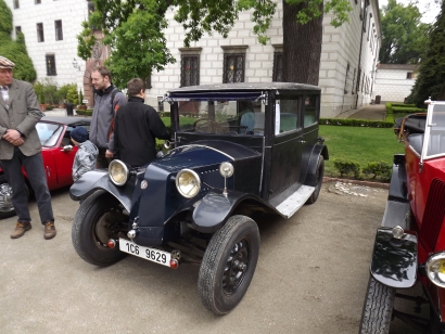 na nádvoří zámku v Třeboni výstavu historických vozidel.