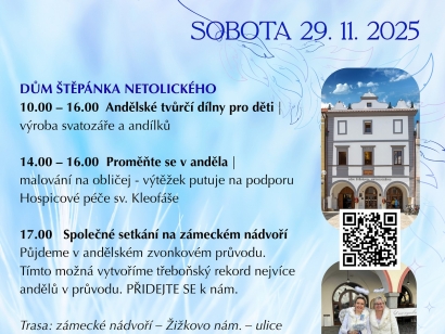Jen jednou do roka stane se, že do Třeboně andělé slétnou se. Každému se dech až tají, radost z Vánoc všechno halí. Čerti mají v ten den útrum, Třeboň patří dobrým kouzlům. Třeboň plná andělů je zkrátka zážitek pro malé i velké.