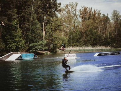 V areálu na vás čekají dva moderní vodní vleky pro vodní lyžování a wakeboarding, díky kterým si užijí zábavu úplní začátečníci i zkušení rideři.