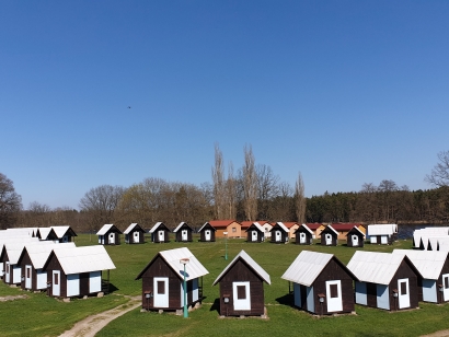 Ubytování je ve 4 lůžkových chatkách, pokojích, nebo ve vlastních stanech a karavanech.