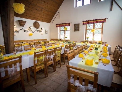 Hned vedle areálu kempu se nachází Restaurace Koliba s nabídkou grilovaných mas na otevřeném ohništi přímo uprostřed restaurace. I mimo sezónu pro vás uspořádáme svatební hostinu, narozeninovou oslavu či firemní akci.