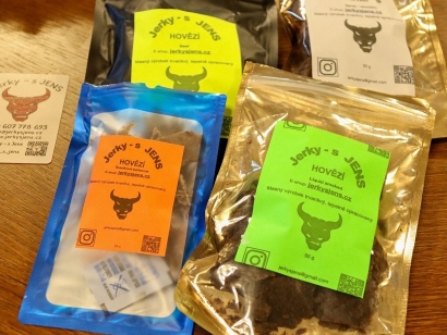 Pod značkou Jerky Jen’s najdete prvotřídní hovězí sušené maso, které je ideální svačinou na cesty, cyklovýlety nebo jen tak pro chuť. Renata Koktavá si zakládá na lokálním původu surovin – hovězí maso odebírá výhradně z místních jatek v Lišově.